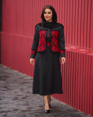 پشت یقه زیره دکمه خورده جهت تنپوش راحت کمربند از جنس تافته جهت تنظیم سایز استفاده شده