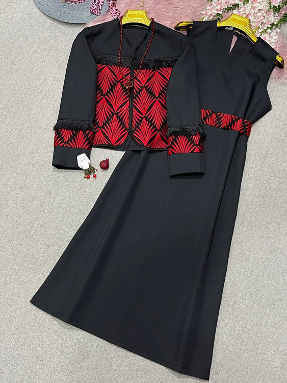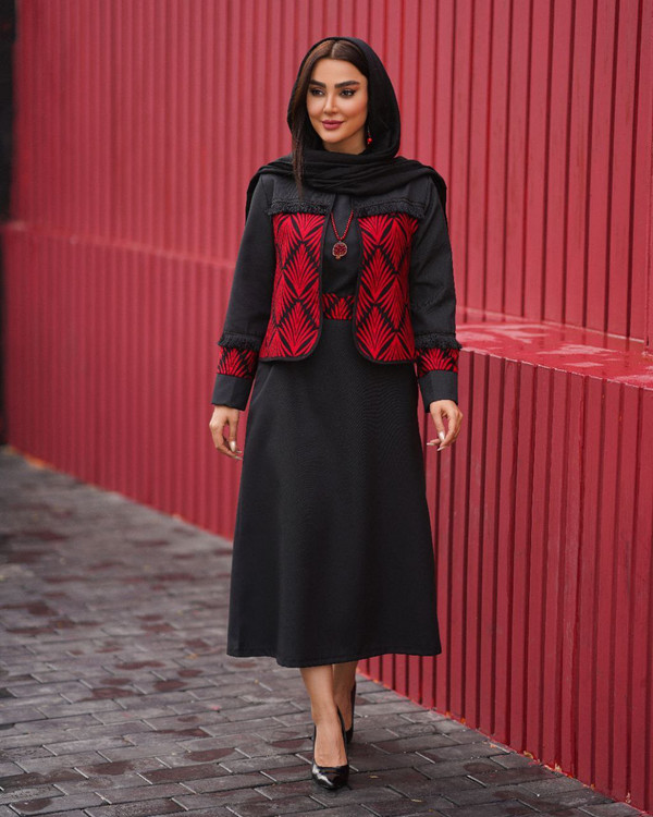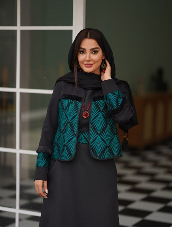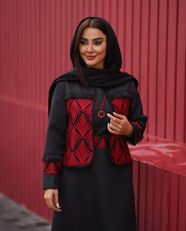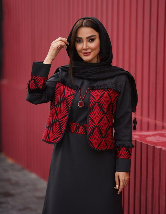 پشت یقه زیره دکمه خورده جهت تنپوش راحت کمربند از جنس تافته جهت تنظیم سایز استفاده شده